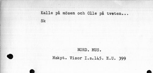 //// *" ' — . . . .. . . - M . ... //// Et //// Kalle på mösen och Olle på tveten... //// i Sk //// HH^M^w* -. //// & //// : NORD. MUS. //// " - - - ^ , - - * ' //// ^ Mskpt. Visor I.s.145. E.U. 399 ////