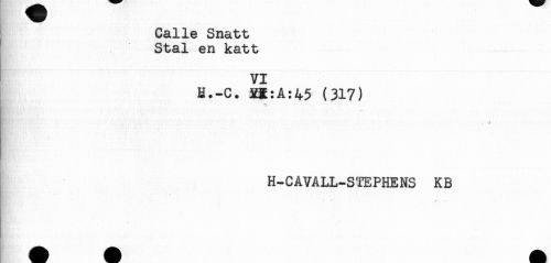 //// } Calle Snatt //// Stal en katt //// VI //// H.-C. (317) //// - //// R t //// H-CAVALL-STEPHENS KB //// -t. ////