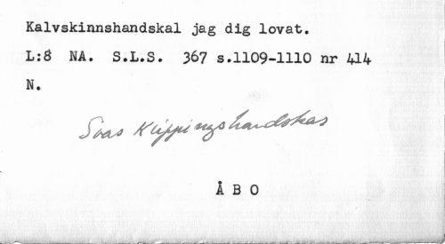 //// Kalvskinnshandskal jag dig lovat. //// * //// L:3 NA. S.L.S. 367 s.1109-1110 nr 414 //// N. //// i //// ÅBO //// -__.r.____________________________________ .. __. . ..._______.___— ^ —. .. _______-____________- —------------^---------_____'----.......'.-....— —---—--- ////