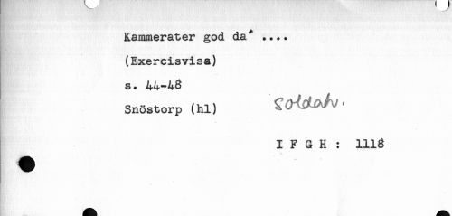 //// K'' //// Kammerater god da^ .... //// (Exercisvisa) //// s. 44-43 //// Snöstorp (hl) ^ ^ ^ ^ ^ //// I F G H : 1113 ////