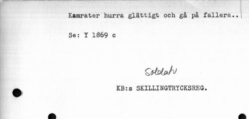 //// Kamrater hurra glättigt och gå på fallera.. //// Se: Y 1369 c //// ^ KB:s SKILLINGTRYCKSREG. ////