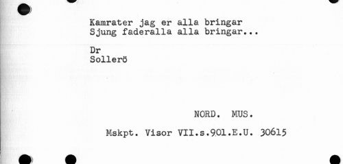//// Kamrater jag er alla bringar //// Sjung faderalla alla bringar... //// Dr //// Sollerö //// NORD. MUS. //// Mskpt. Visor VII. s. 9.01.E.U. 30615 ////