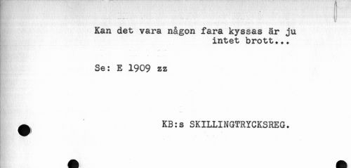 //// Kan det vara någon fara kyssas är ju //// intet brott... //// Se: E 1909 zz //// ^ KB:s SKILLINGTRYCKSREG. ////