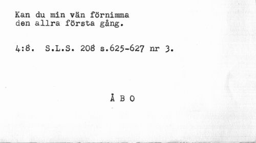 //// Kan du min vän förnimma //// den allra första gång. //// 4:3. S.L.S. 203 s.625-62? nr 3* //// ÅBO ////