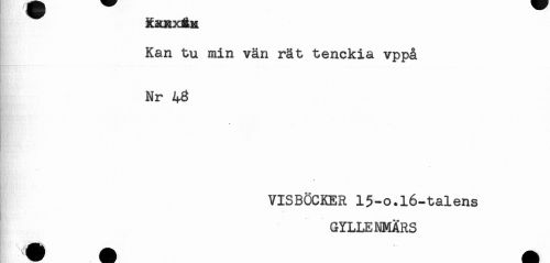 //// &XKXÉK //// Kan tu min vän rät tenckia vppå //// Nr //// VISBÖCKER 15-o.l6-talens //// HR , ' < //// GYLLENMÄRS ////