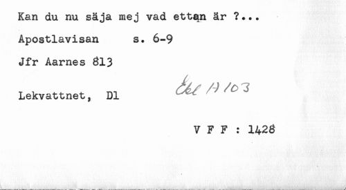 //// Kan du nu säja mej vad ettqn är ?... //// Apostlavisan s. 6-9 //// Jfr Aarnes 813 //// Lekvattnet, Dl 7 /<5 -i //// V F F : 1428 ////