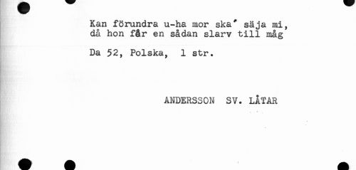 //// Kan förundra u-ha mor ska* säja mi, //// då hon får en sådan slarv till måg //// Da 52, Polska, 1 str. //// . //// ANDERSSON SV. LÅTAR //// * ////
