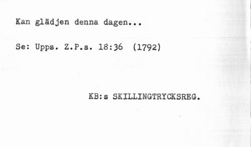 //// Kan glädjen denna dagen... //// t //// Se: Upps. Z.P.s. 18:36 (1792) //// ' //// < //// KB:s SKILLINGTRYCKSREG. ////