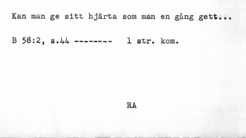 //// Kan man ge sitt hjärta som man en gång gett... //// B 58:2, s.44 —------ 1 str. kom. //// RA ////