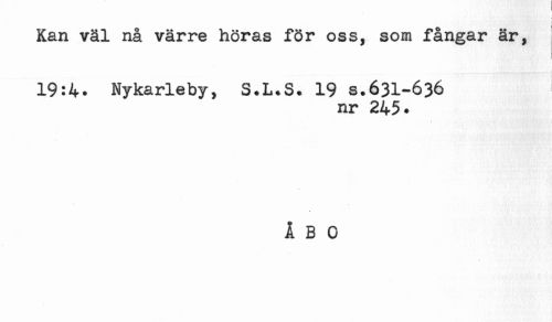 //// Kan väl nå värre höras för oss, som fångar är, //// 19:4- Nykarleby, S.L.S. 19 s.631-636 //// nr 245. //// ÅBO ////
