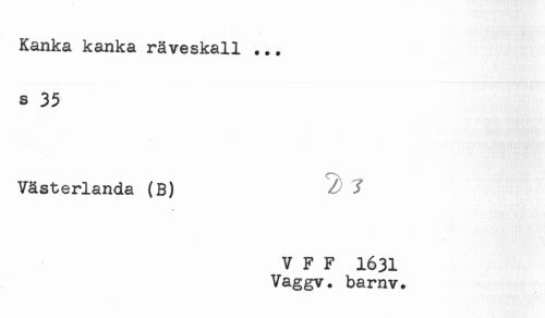 //// Kanka kanka räveskall ... //// s 35 //// Västerlanda (B) //// V F F 1631 //// Vaggv. barnv. ////