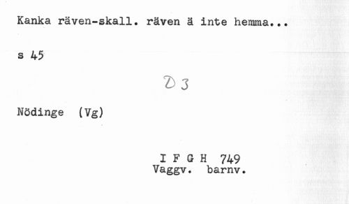 //// Kanka räven-skall, räven ä inte hemma... //// s 45 //// 33 //// Nödinge (Vg) //// I F G H 749 //// Vaggv. barnv. ////