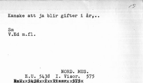 //// ....... ^ . ^ //// Kanske att ja blir gifter i år,.. //// Sm //// V.Ed m.fl. //// NORD. MUS. //// E.U. 5438 1. Visor. 575 ////