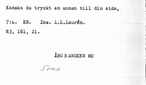 //// Kanske du tryckt en annan till din sida, //// 7:4* KH* Ins. L.L.Laur%n. //// a //// R3, 161, 21. //// } //// : //// ! //// i //// ÅBO RANCKEN MS ' //// e ////