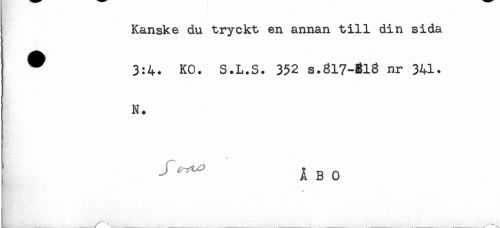 //// Kanske du tryckt en annan till din sida //// ^ 3:4. KO. S.L.S. 352 s.317-313 nr 341. //// N. //// ^^ A BO //// . * ////