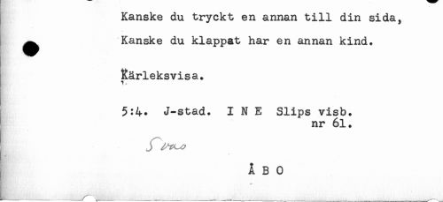 //// Kanske du tryckt en annan till din sida, //// ^ Kanske du klappat har en annan kind. //// Kärleksvisa. //// i, //// 5:4* J-stad. I N E Slips visb. //// nr 61. //// { ÅBO //// L____________ _r ___ ____________________________________________ _ ......_........ ////