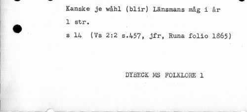 //// Kanske je wåhl (blir) Länsmans må g i år //// 1 str. //// s 14 (Vs 2:2 s.457, jfr, Runa folio 1365) //// t //// DYBECK MS FOLKLORE 1 //// [ ^^^ t . * ////