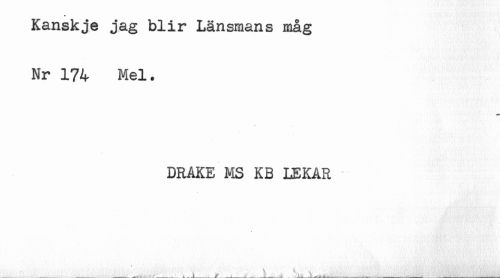 //// Kanskje jag blir Länsmans måg //// Nr 174 Mel. //// DRAKE MS KB LEKAR //// _______________.__. <,.'__A.....A_____A. .—_ .. __' '_J^..___—.--.____________.___________________________ ////