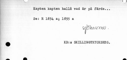 //// Kapten kapten hallå vad är på färde... //// Se: R 1354 a; 1355 a //// * //// ^ KB:s SKILLINGTRYCKSREG. ////