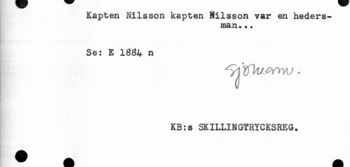 //// Kapten Nilsson kapten Nilsson var en heders- //// man... //// ! //// c. //// Se: E n //// KB:s SKILLINGTRYCKSREG. //// * ////
