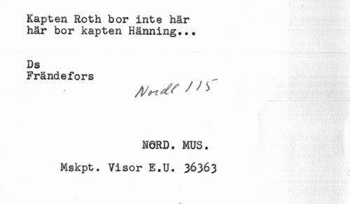 //// Kapten Roth bor inte här //// här bor kapten Hänning... //// Ds //// Frändefors //// NORD. MUS. //// Mskpt. Visor E.U. 36363 ////