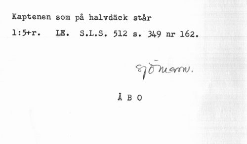 //// Kaptenen som på halvdäck står //// l:5+r. LE. S.L.S. $12 s. 349 nr 162. //// ÅBO ////