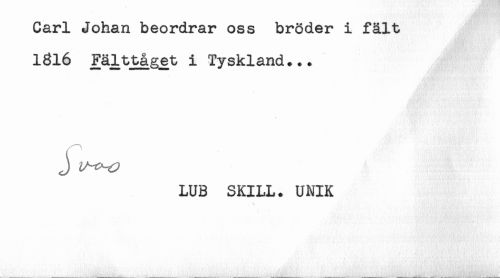 //// Carl Johan beordrar oss bröder i fält //// 1616 Fälttåget i Tyskland... //// J //// LUB SKILL. UNIK ////