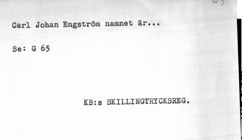 //// t //// t //// i //// Carl Johan Engström namnet är... H //// HM //// Se: G 6$ ! //// KB:s SKILLINGTRYCKSREG. ! ////
