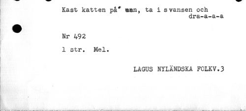 //// Kast katten på* aen, ta i svansen och //// dra-a-a-a //// Nr 492 //// 1 str. Mel. //// LAGUS NYLÄNDSKA FOLKV.3 ////