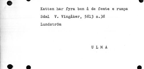 //// Katten har fyra ben å de femte e rumpa //// Sdml V. Vingåker, 5313 s.33 //// Lundström //// U L M A ////