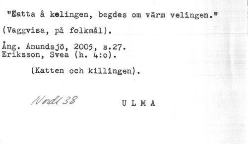 //// "Éatta å kelingen, begdes om värm velingen." //// (Vaggvisa, på folkmål). //// Ång. Anundsjö, 2005, s.27. //// Eriksson, Svea (h. 4:o). //// (Katten och killingen). //// U L M A ////