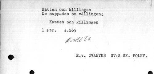 //// ! Katten och killingen //// De nappades om vällingen; //// Katten och killingen //// 1 str. s.26$ //// ^ E.v. QVANTEN SV:S SK. FOLKV. ////