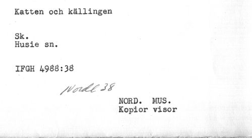 //// Katten och källingen //// Sk. //// Husie sn. //// IFGH 4933:38 //// NORD. MUS. //// Kopior visor //// _____ . -- _____ ____-_________________ . - *__ __——__—----——----—^—..------------—----- ////