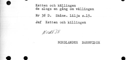 //// Katten och källingen //// de slogs en gång om vällingen //// Nr 33 D. Skåne. Lilja s*15. //// i //// Jmf Katten och killingen //// . //// NORDLANDER BARNVIS OR //// . //// — A* ////