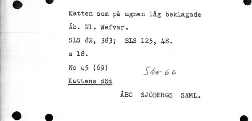 //// Katten som på ugnen låg beklagade //// Åb. NI. Wefvar. //// SLS 82, 383; SLS 125, 48. //// s 18. //// No 45 (69) ^^^ //// Kattens död //// ÅBO SJÖBERGS SAML. //// *r - V. ////