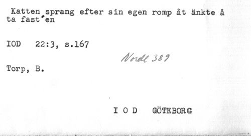 //// Katten sprang efter sin egen romp åt änkte å //// ta fast*en //// IOD 22:3, s.167 //// Torp, B. //// IOD GÖTEBORS //// * ////