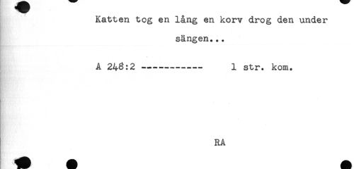 //// Katten tog en lång en korv drog den under //// sängen... //// A 248:2----------- 1 str. kom. //// RA ////
