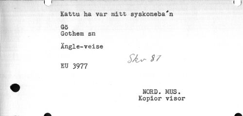 //// Kattu ha var mitt syskoneba*n //// G6 //// Gothem sn //// Ängle-veise //// EU 3977 //// ^ NORD. MUS. //// Kopior visor ////