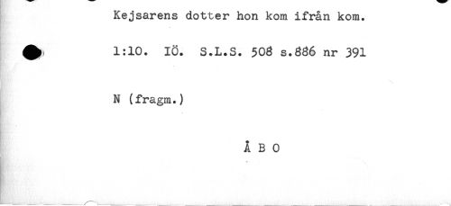 //// Kejsarens dotter hon kom ifrån kom. //// ^ 1:10. 10. S.L.S. 50g s.836 nr 391 //// N (fragm.) //// ÅBO ////
