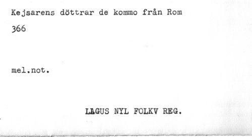 //// Kejsarens döttrar de kommo från Rom //// 366 //// mel.not. //// LMUS NYL FOLKV REG. //// < ////