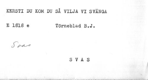 //// KERSTI DU KOM DU SÅ VILJA VI SVÄNGA //// E 1818 e Törneblad B.J. //// J //// S V A S ////