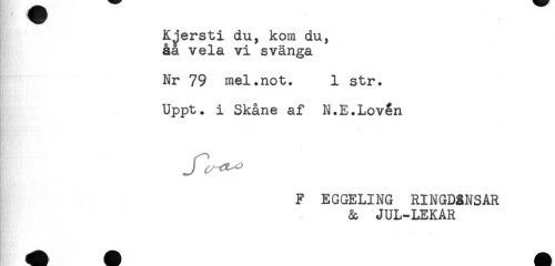 //// KJersti du, kom du, //// åa vela vi svänga //// Nr 79 mel.not. 1 str. //// Uppt. i Skåne af N.E.Loven //// HB'.' //// F EGGELING RINGDANSAR //// & JUL-LEKAR ////