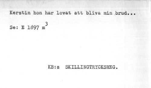 //// Kerstin hon har lovat att bliva min brud... //// 3 //// Se: E 1897 m //// KB:s SKILLINGTRYCKSREG. ////