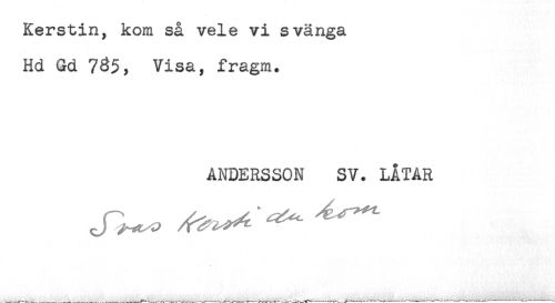 //// Kerstin, kom så vele vi svänga //// Hd Gd 7^5, Visa, fragm. //// ANDERSSON SV. LÅTAR ////