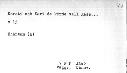 //// 73L //// Kersti och Kari de körde vall gäss... //// s 15 //// Hjärtum (B) //// * //// . //// V F F 1445 ! //// Vaggv. barnv. ////