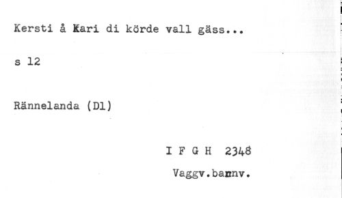 //// Kersti å Kari di körde vall gäss... //// i //// s 12 } //// * //// r //// < //// C //// Rännelanda (Dl) ; //// ' //// I F G H 2343 //// Vaggv.bannv. ////