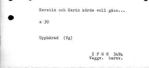//// Kerstin och Karin körde vall gäss... //// ^ s 39 //// Upphärad (Vg) //// I F G H 3494 //// Vaggv. barnv. ////