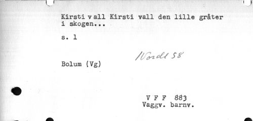 //// Kirsti v all Kirsti vall den lille gråter //// i skogen... //// s. 1 //// Bolum (Vg) //// - * //// - //// V F F 333 //// Vaggv* bamv. ////