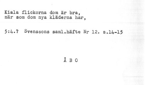 //// Kiala flickorna dom är bra, //// när som dom nya kläderna har, //// 5:4.? Svenssons saml.häfte Nr 12. s.14-15 //// ÅBO ////