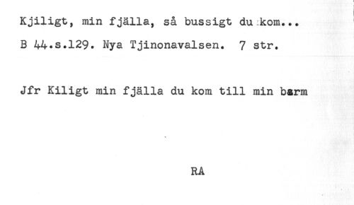 //// Kjiligt, min fjälla, så bussigt du kom... //// B 44.s.129. Nya Tjinonavalsen. 7 str. //// Jfr Kiligt min fjälla du kom till min barm //// € //// RA ////